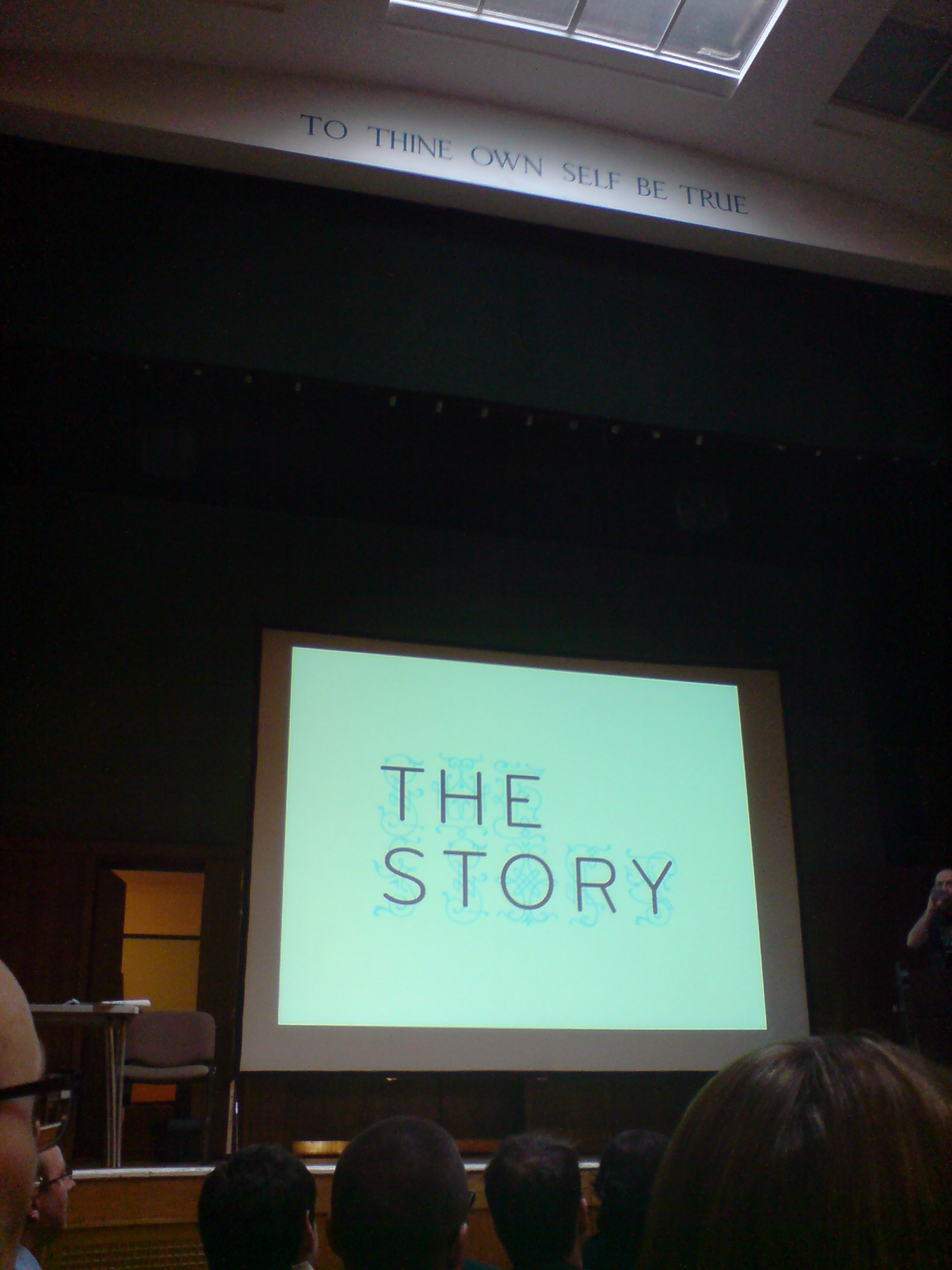 There are plenty of other people’s thoughts, videos, photos etc. on the event out there on the web. Search #thestory on twitter. We’ve also been promised podcasts of all the sessions at some point in the near future, so keep an eye on The Story website.